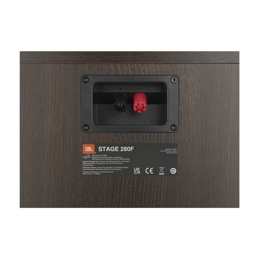 Designed and engineered in our world-famous Acoustic Engineering Center of Excellence in Northridge^ California^ Stage 280F is the flagship of the new JBL Stage Series. This floorstanding loudspeaker features a 2.5-way design with Next Generation patented High-Definition Imaging (HDI) waveguide geometry^ 1-inch (25mm) Anodized Aluminum dome tweeter^ and dual 8-inch (200mm) Polycellulose cone woofers that provide deep^ signature JBL bass.