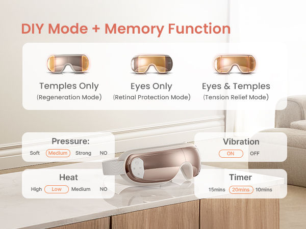 Newly improved voice controllable eye care experience. Combines the comfort of acupressure with 3 levels of heat and a cooling gel mask for a refreshing two-way relief.